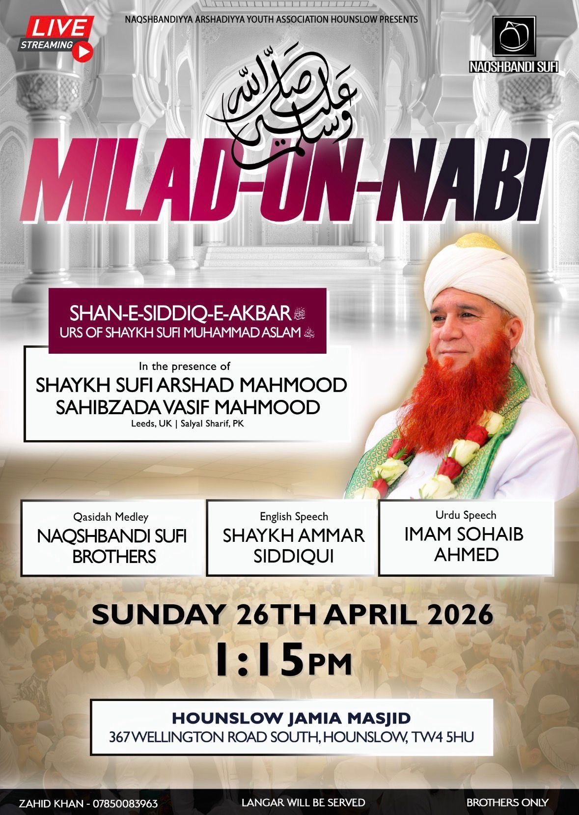 Hounslow Jamia Masjid 367 Wellington Road South Hounslow, TW4 5HU United Kingdom, United KingdomAn unmissable gathering in the blessed company and supervision of the esteemed spiritual guide, Shaykh Arshad Mahmood. Join us for an uplifting and transformative event featuring inspiring talks in both English and Urdu, with the programme conducted in English to benefit all attendees. A rare opportunity to reconnect, reflect, and strengthen your spiritual journey in […]
