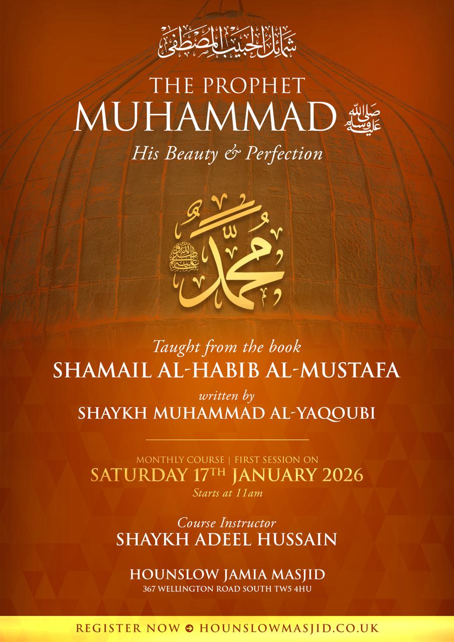 Hounslow Jamia Masjid 367 Wellington Road South Hounslow, TW4 5HU United Kingdom, United KingdomNew Course Starting January Shama’il al-Habib al-Mustafa taught by Shaykh Adeel Hussain A monthly course on an essential topic - the Prophet Muhammad ﷺ Begins Saturday 17th January 2026 from […]
